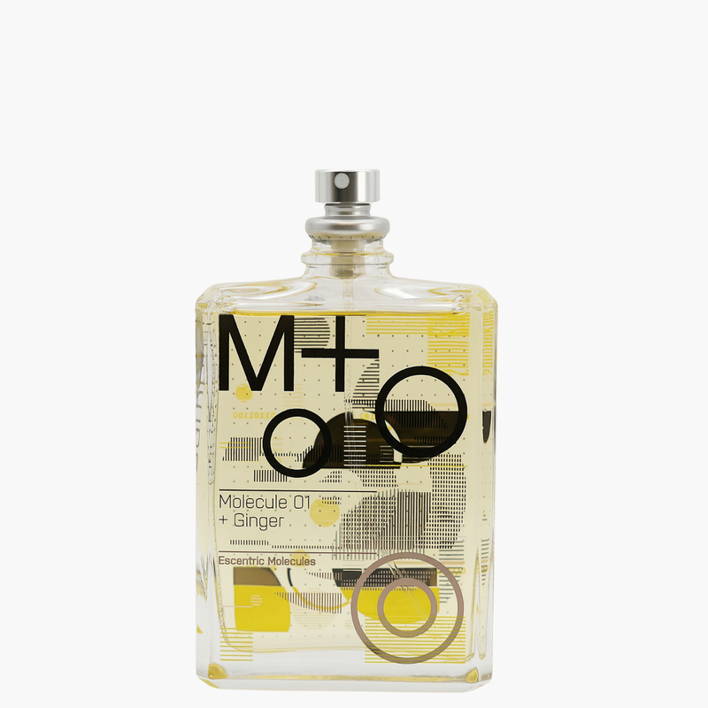 Molecule 01 + Ginger is part of Escentric Molecules’ “M+” (Molecule Plus) line. The idea behind M+ is simple: take the house’s signature aroma-molecule, Iso E Super, and pair it with a single natural ingredient to create a minimalist but expressive fragrance