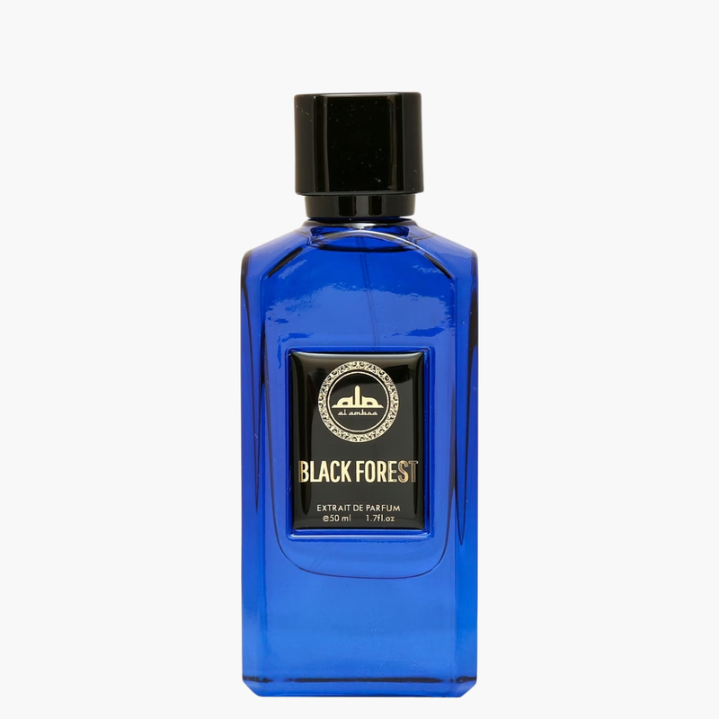 Al Ambra Black Forest Extrait doesn’t refer to the literal forest but to the sensory impression of depth, freshness, and woodiness suggested by the scent profile. It's Modern amber-woody unisex fragrance — typically considered fresh & elegant rather than dark or heavy.