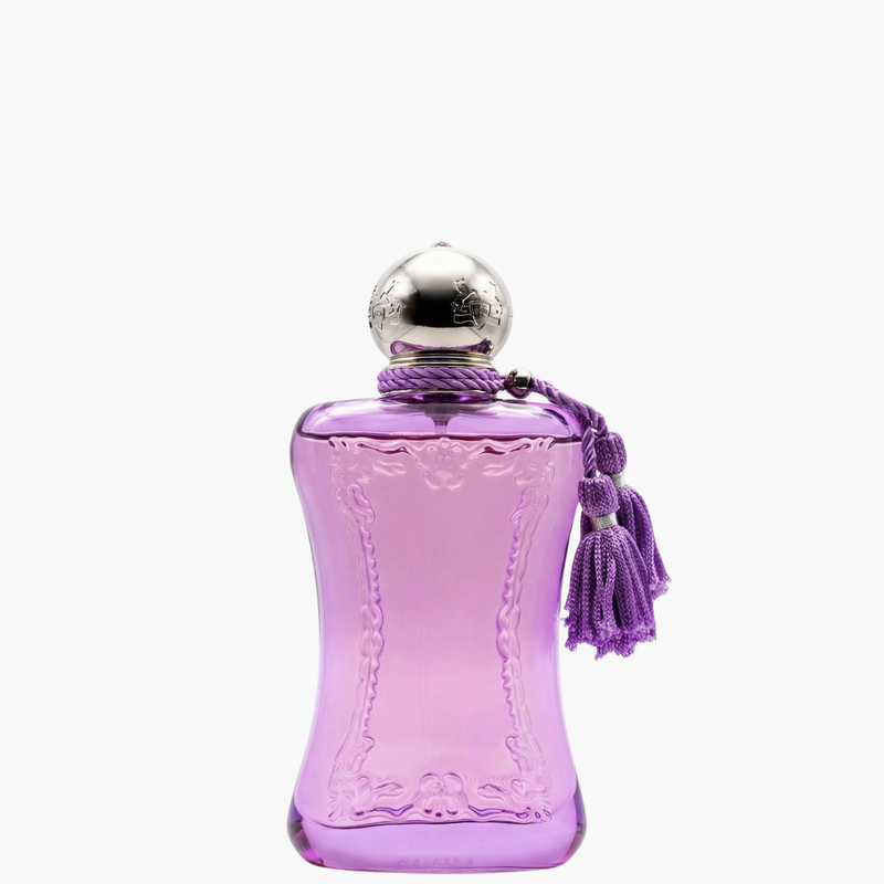 Parfums De Marly Palatine EDP is a sophisticated floral fragrance with fresh, fruity, and powdery facets. Sparkling mandarin, bergamot, and pear open the scent, leading to elegant violet petals and a velvety base of musk and creamy sandalwood.